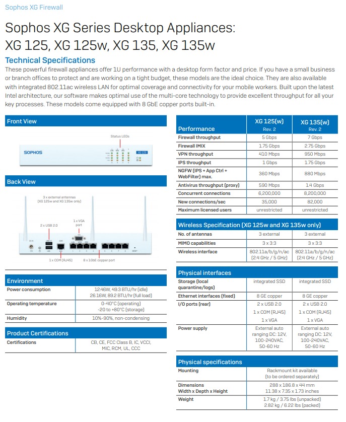Sophos XG Series Desktop Appliances: XG 125
