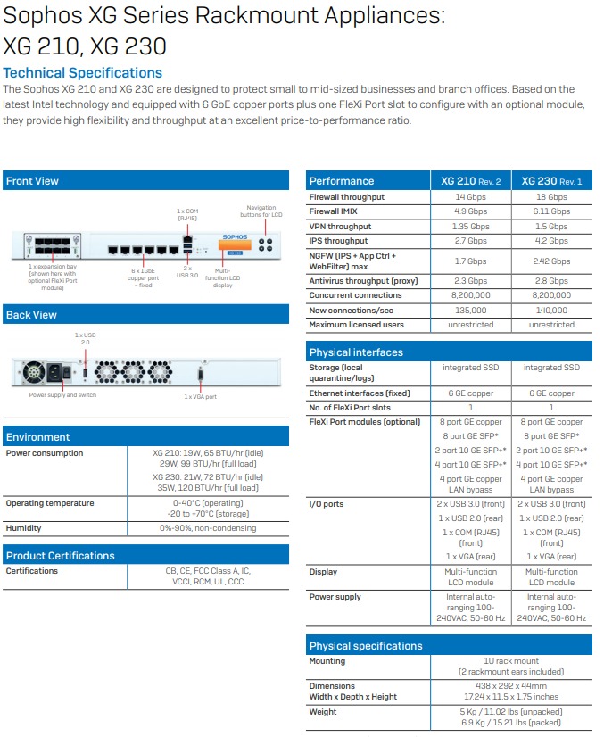 The Sophos XG 210 and XG 230 are designed to protect small to mid-sized businesses and branch offices. Based on the