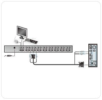 8埠KVM多電腦切換器 CS78 KVM多電腦切換器可透過單一控制端(鍵盤、螢幕、以及滑鼠)存取8台伺服器。使用者可以藉由CS78前方面板按鈕與熱鍵組合,方便地選擇與切換連接的伺服器。此外,CS78的安裝流程相當簡易,僅須將線材連接到相對應的連結埠上即可完成。CS78並具備強大的自動掃描功能,使用者可以自行設定自動掃瞄的時間,以便隨時監控CS78所連接的伺服器狀態。
