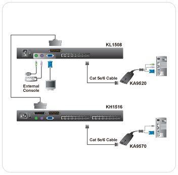 8埠Cat 5雙滑軌LCD KVM多電腦切換器 ALTUSEN KL1508 Cat 5雙滑軌LCD KVM多電腦切換器內建可分別獨立抽拉的17/19吋LCD螢幕與鍵盤/滑鼠觸控板。一台KL1508可控制多達8台伺服器,為了提高可靠度與效率,KL1508採用RJ-45接頭與Cat 5e/6線材連接伺服器。另外,透過連接各種電腦端模組,KL1508可支援包括PC、Mac、Sun電腦、以及序列裝置。