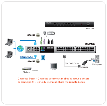 管理 提供多達64組使用者帳號-支援多達32位使用者同時分享控制 支援中止連線功能 – 管理者可中止正在運行的連線作業 支援事件日誌及Windows作業系統的log server 透過E-mail及SNMP trap通知重要系統事件;支援Syslog NEW! 支援韌體更新 數據機撥號及回撥功能 電腦端模組ID 連接埠分享模式支援多位使用者共同存取一台伺服器 可與ALTUSEN CC2000管理軟體整合使用 可與Power Over the NET™ 遠端電源管理方案整合,提供遠端電源控管l